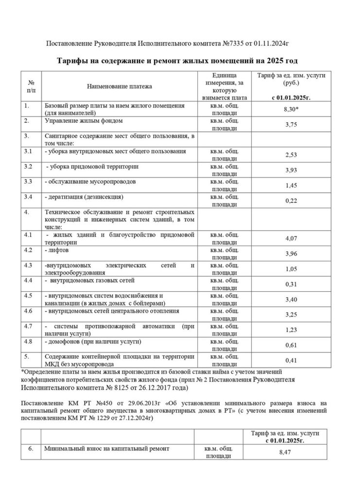 Тарифы на содержание и ремонт жилых помещений на 2025 год